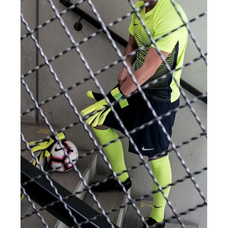 Medias de fútbol Nike Classic II Cushion OTC en color amarillo flúor, elaboradas en tejido Dri-Fit que absorbe el sudor, con sujeción trasera extra.