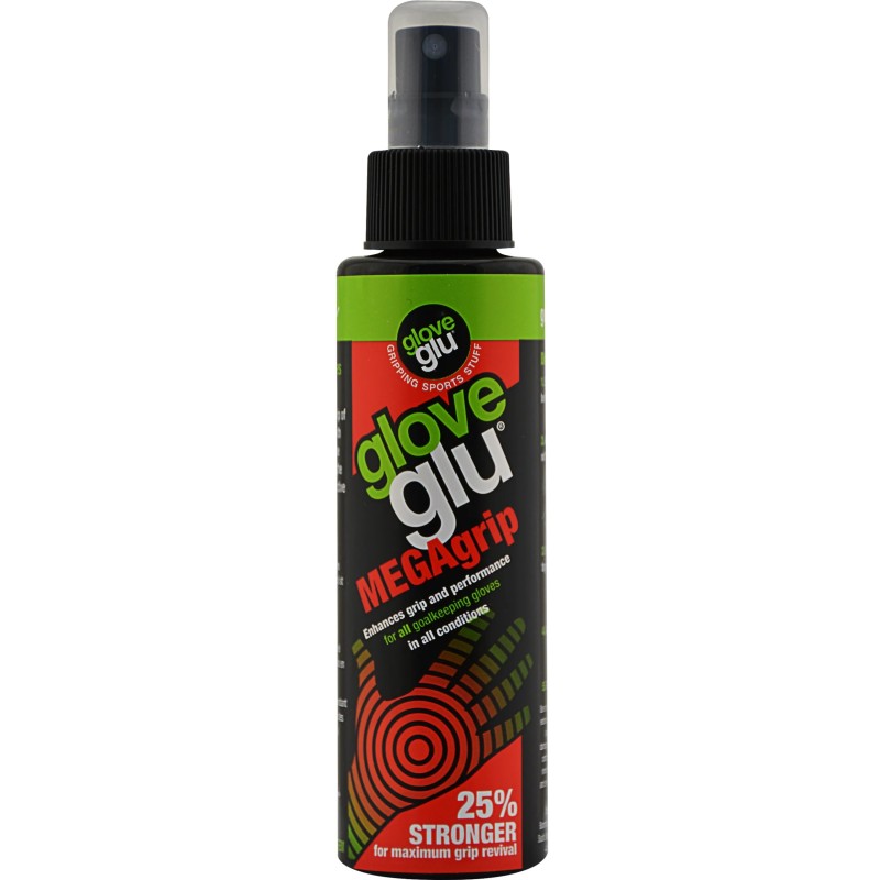 Spray para guantes de portero Glove Glu Megagrip para el cuidado de los guantes desgastados, con capacidad de 120 ml, un 25% más fuerte, en formato spray para mayor comodidad de uso. ¡Revive tus guantes favoritos y potencia su agarre para no dejar de usarlos!