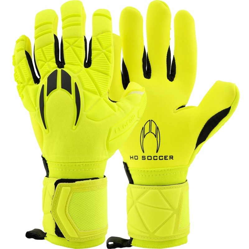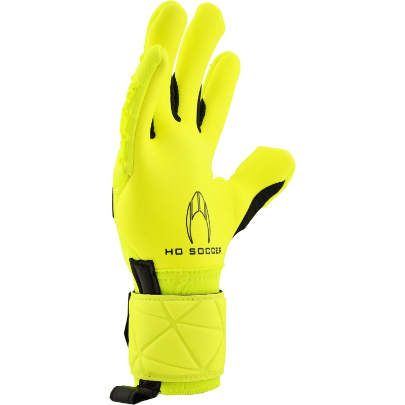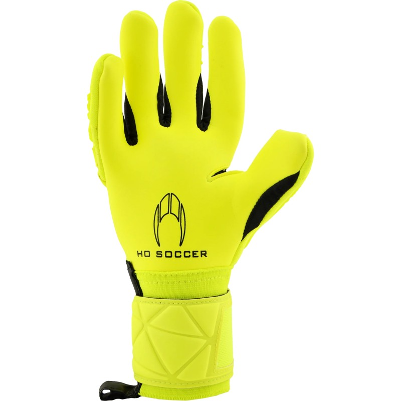 Guantes de portero de fútbol de la marca HO Soccer de gama media. Corte de la palma HO SOCCER FIT GECKO con palma en color amarilla.